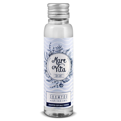 Σαμπουάν 35 ml σε οικολογικό μπουκάλι από 100% ανακυκλωμένο πλαστικό. Σαμπουάν εμπλουτισμένο με θαλασσινό αλάτι, ιδανικό για τον καθαρισμό του τριχωτού της κεφαλής και την προσέλκυση φυσικής δομής στα μαλλιά. Καλλυντικό με καθαριστική και απολυμαντική δράση. Επίμηκες μπουκάλι με ασημί βιδωτό καπάκι. Ζωντανή και κομψή συσκευασία με μπλε και ανοιχτό μπλε λεπτομέρειες εμπνευσμένες από τη θάλασσα. Καπάκι αλουμινίου με άνοιγμα που ανοίγει (εγγύηση σφραγίδας).
