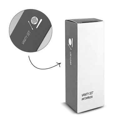 Σετ νιπτήρα για είδη προσωπικής υγιεινής ξενοδοχείου σε ουδέτερη θήκη. 3 μαντηλάκια ντεμακιγιάζ, 3 μπατονέτες, 1 συσκευασία με λίμα σε ουδέτερο χαρτόκουτο.